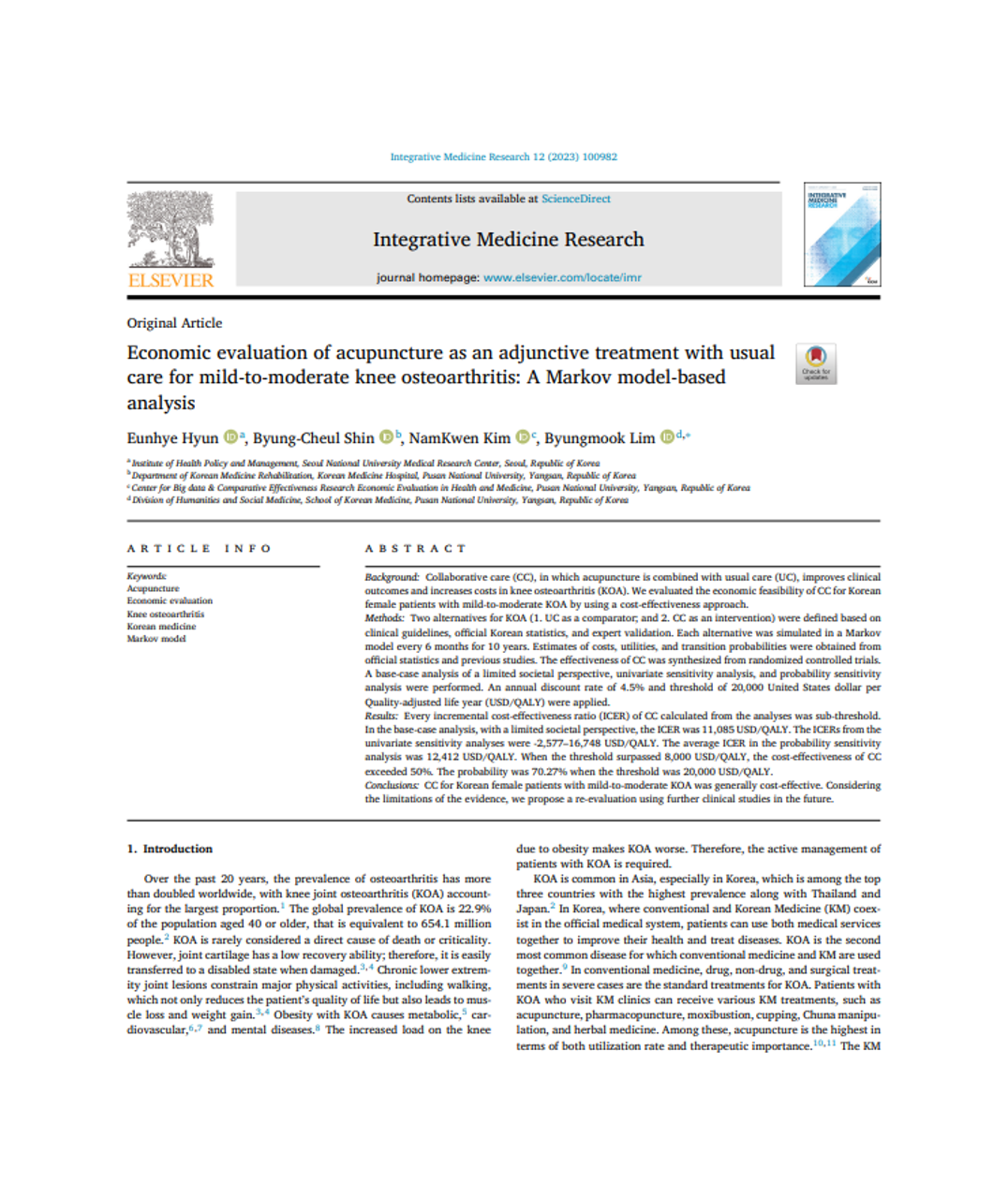 Lee H-Y, Kang H-W, Kim N, Hyun E-H, Seo J-H, Lyu Y-S, et al. Effectiveness of collaborative treatment using Korean and Western medicine for mild cognitive impairment or dementia: A protocol for a prospective observational exploratory study. Medicine. 2018;97(35):e12098.