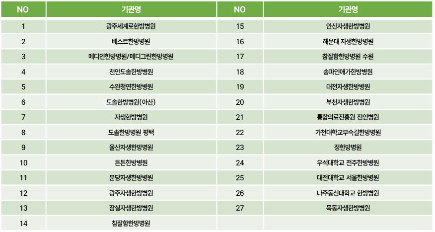 - 본 연구는 의·한 협진 시범사업에서 시행되는 협진 치료에 대한 전향적 임상연구입니다.