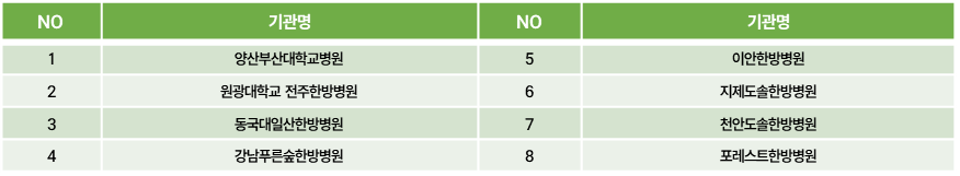 · 연구 대상 상병으로 의·한 협진 시범사업 지침의 의·한 협진 모형에 따라 치료받은 협진환자를 연구대상자로 선정합니다.