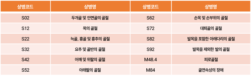 - 아래 골절 관련 상병이 주 진단으로 등록된 환자