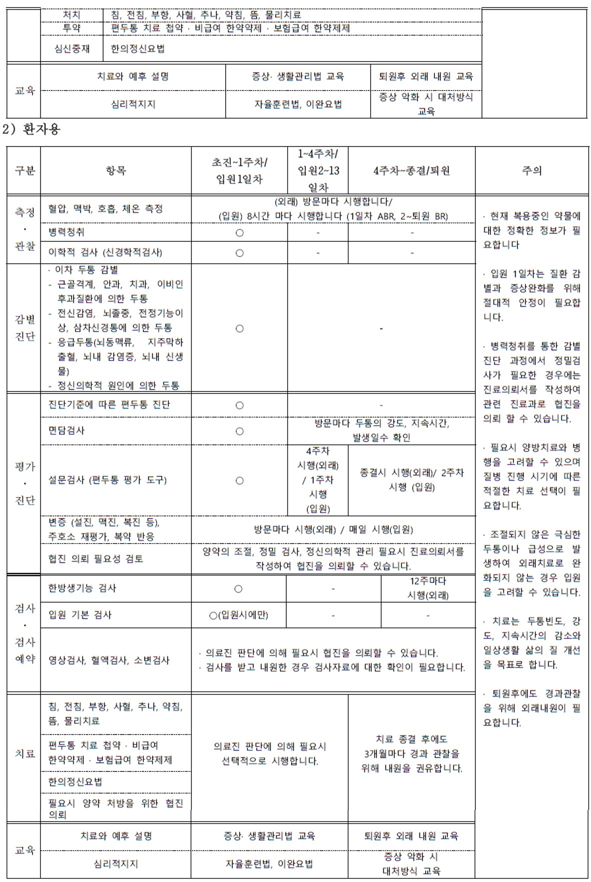 편두통 협진병원용 한의표준임상경로