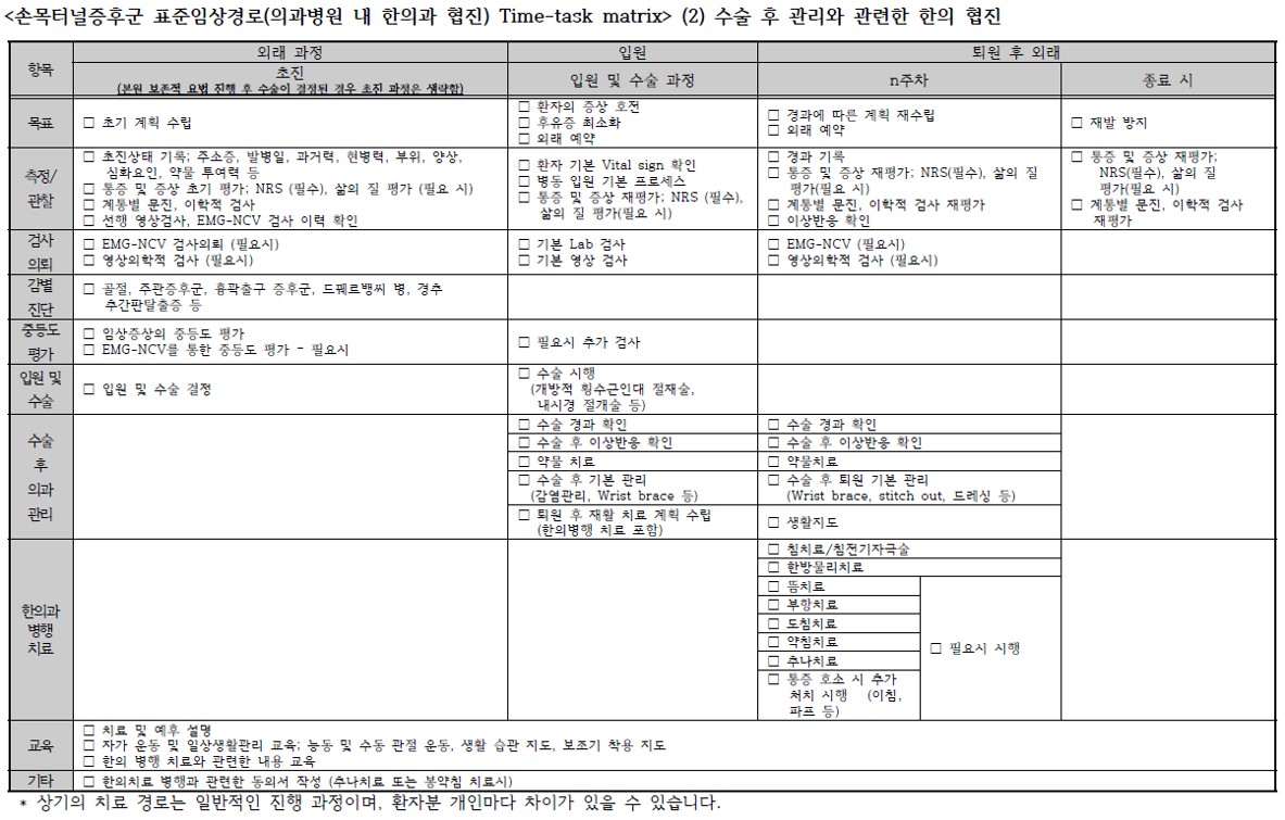 손목터널증후군 협진병원용 한의표준임상경로