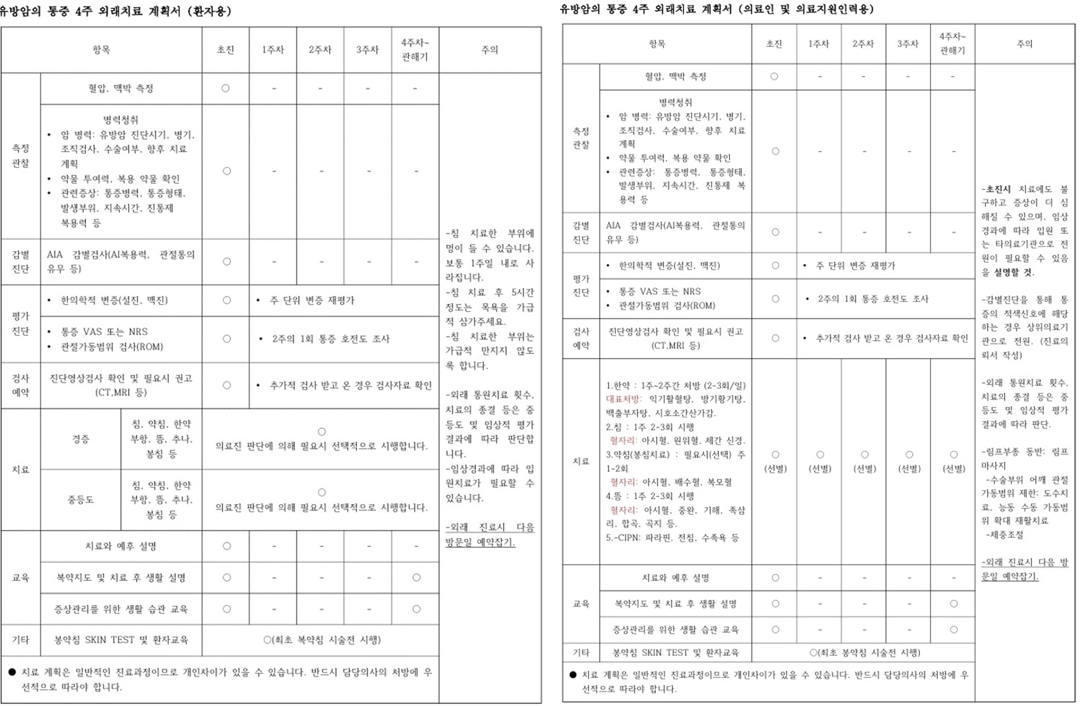 유방암 (유방암 관련 증상) 협진병원용 한의표준임상경로