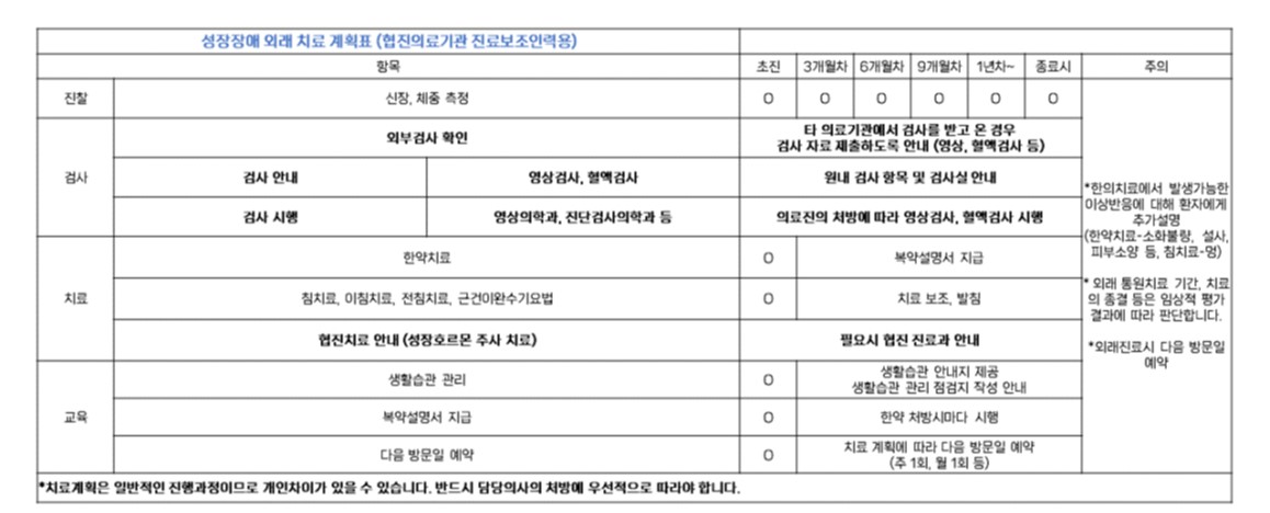 소아청소년성장장애 협진병원용 한의표준임상경로