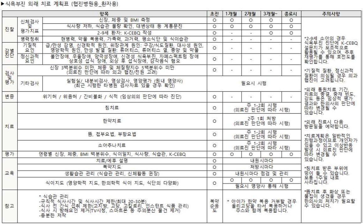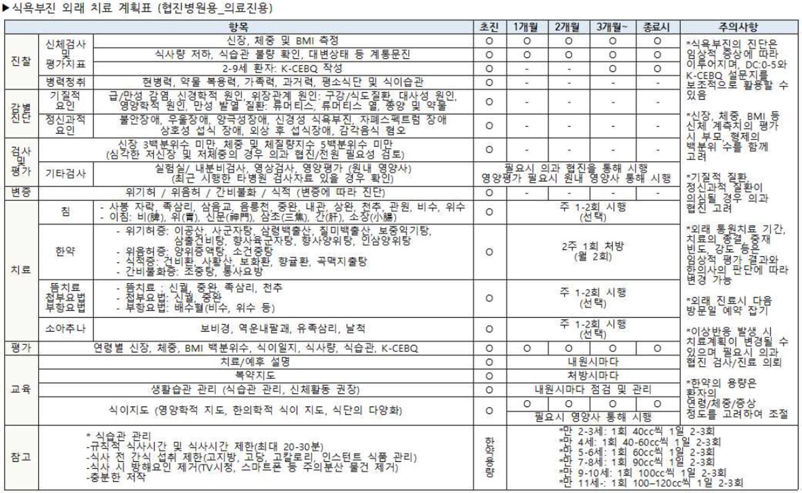 소아식욕부진 협진병원용 한의표준임상경로