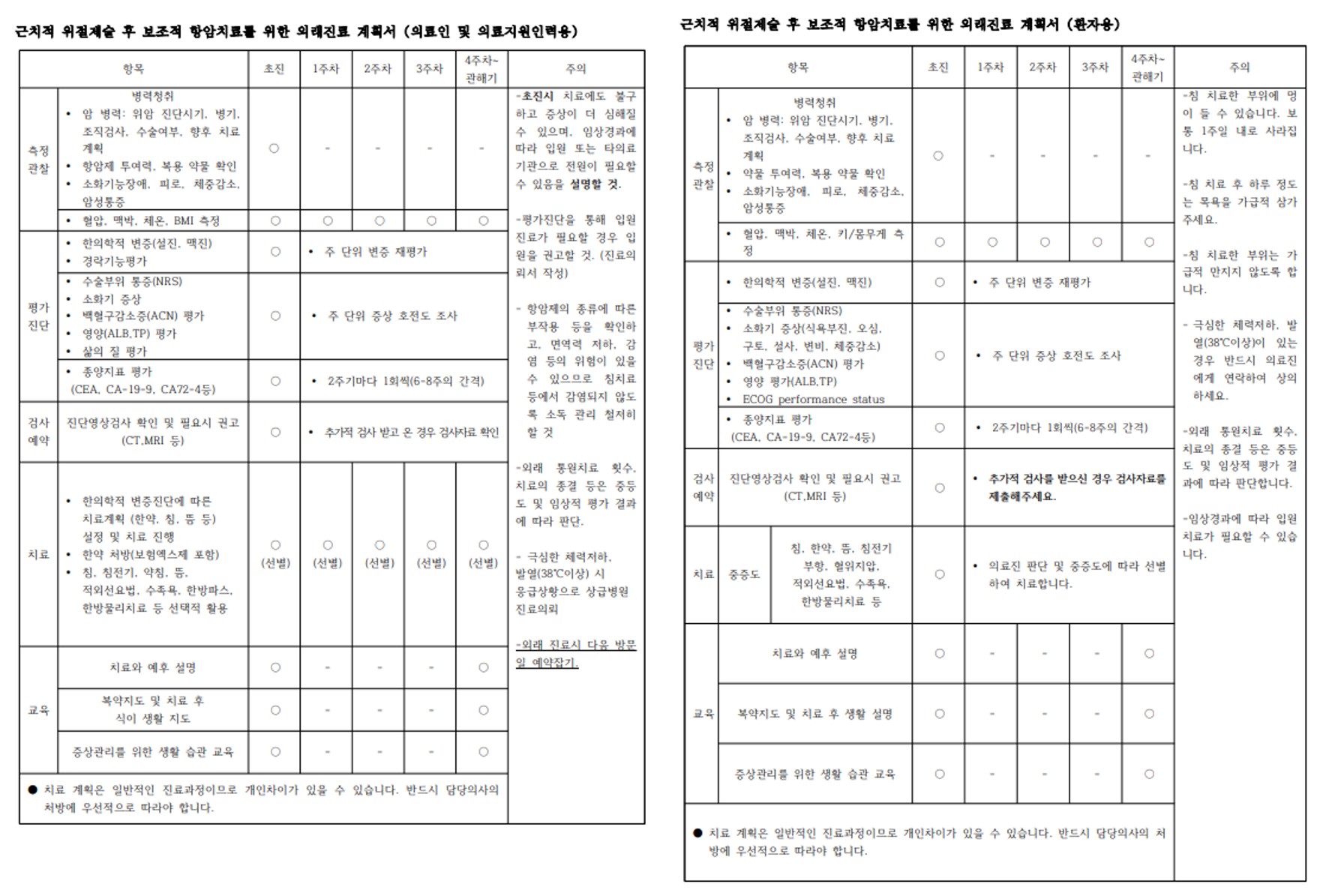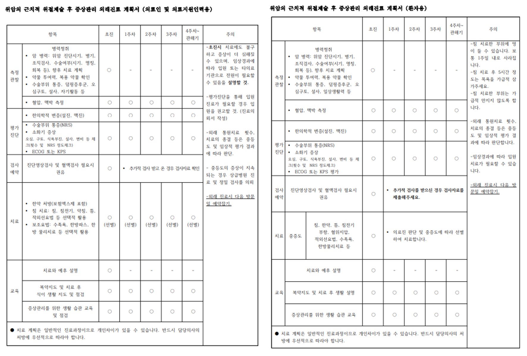 위암 협진병원용 한의표준임상경로