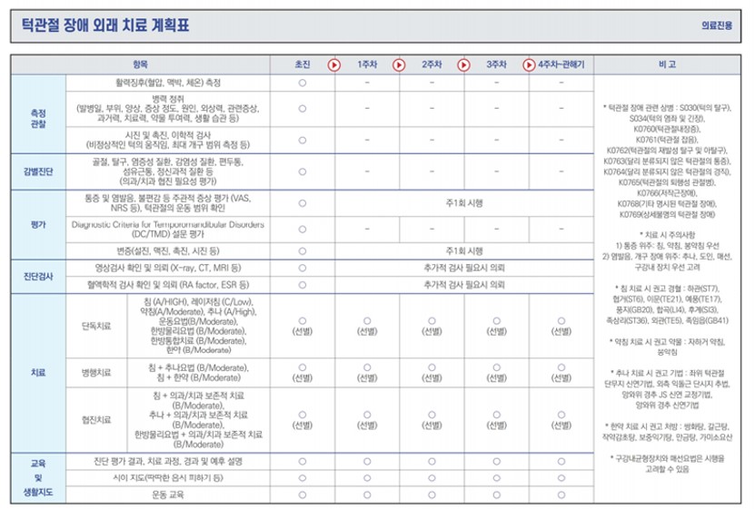 턱관절장애 협진병원용 한의표준임상경로