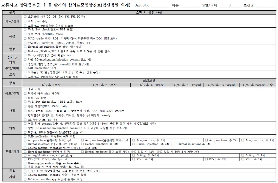 교통사고 상해증후군 협진병원용 한의표준임상경로