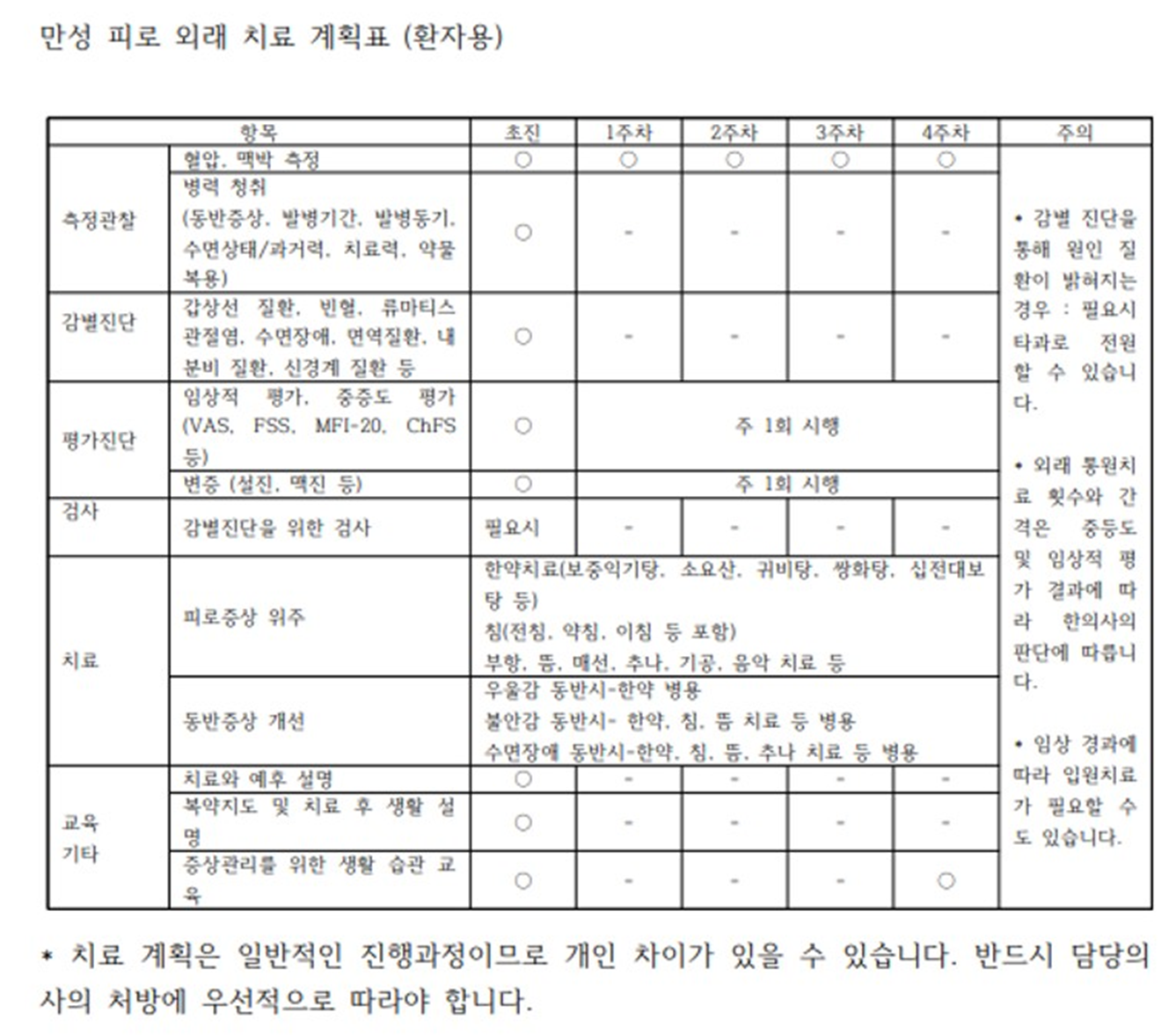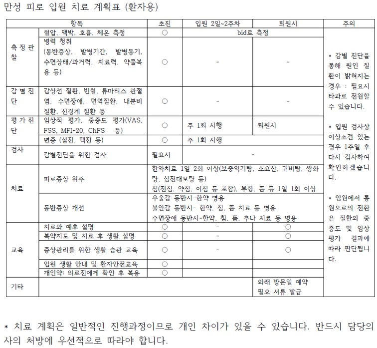Chronic Fatigue Collaborative Treatment Time-Task Matrix