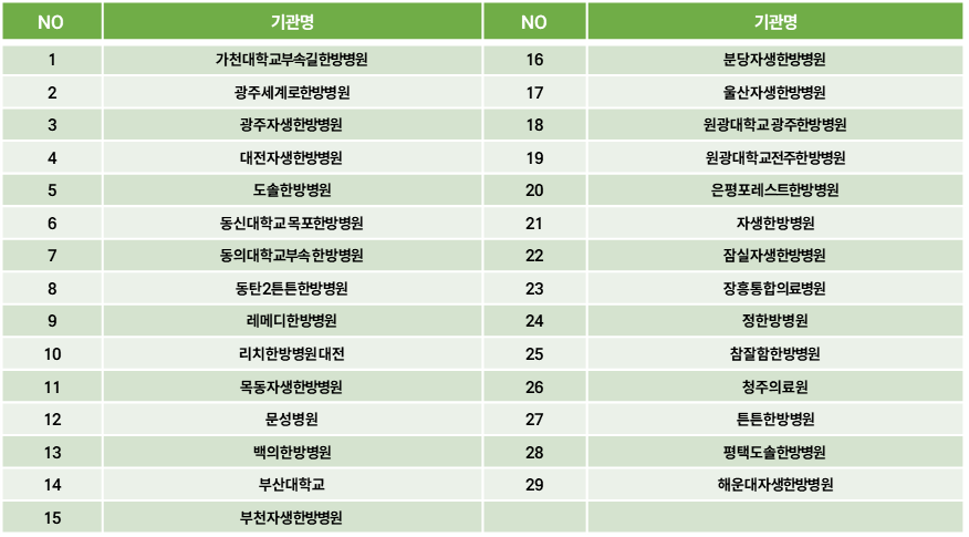 - 본 연구는 의·한 협진 시범사업에서 만성 요통 환자에게 시행되는 협진 치료에 대한 전향적 임상연구입니다.