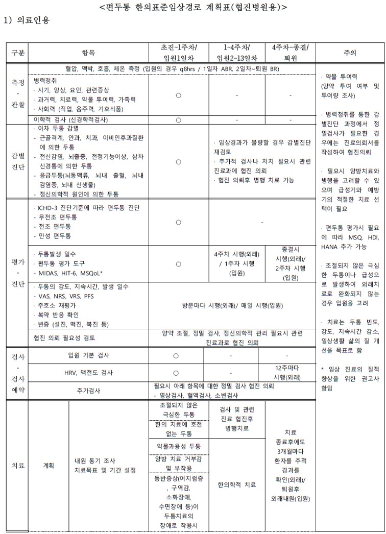 편두통 협진병원용 한의표준임상경로