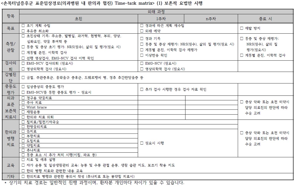 손목터널증후군 협진병원용 한의표준임상경로