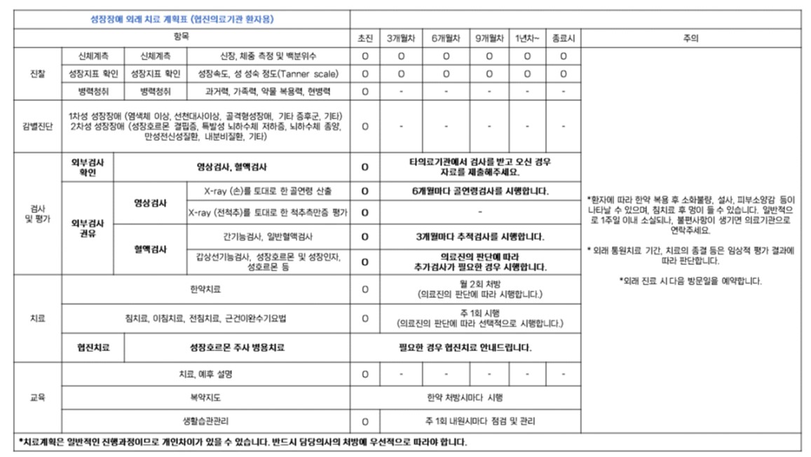 소아청소년성장장애 협진병원용 한의표준임상경로