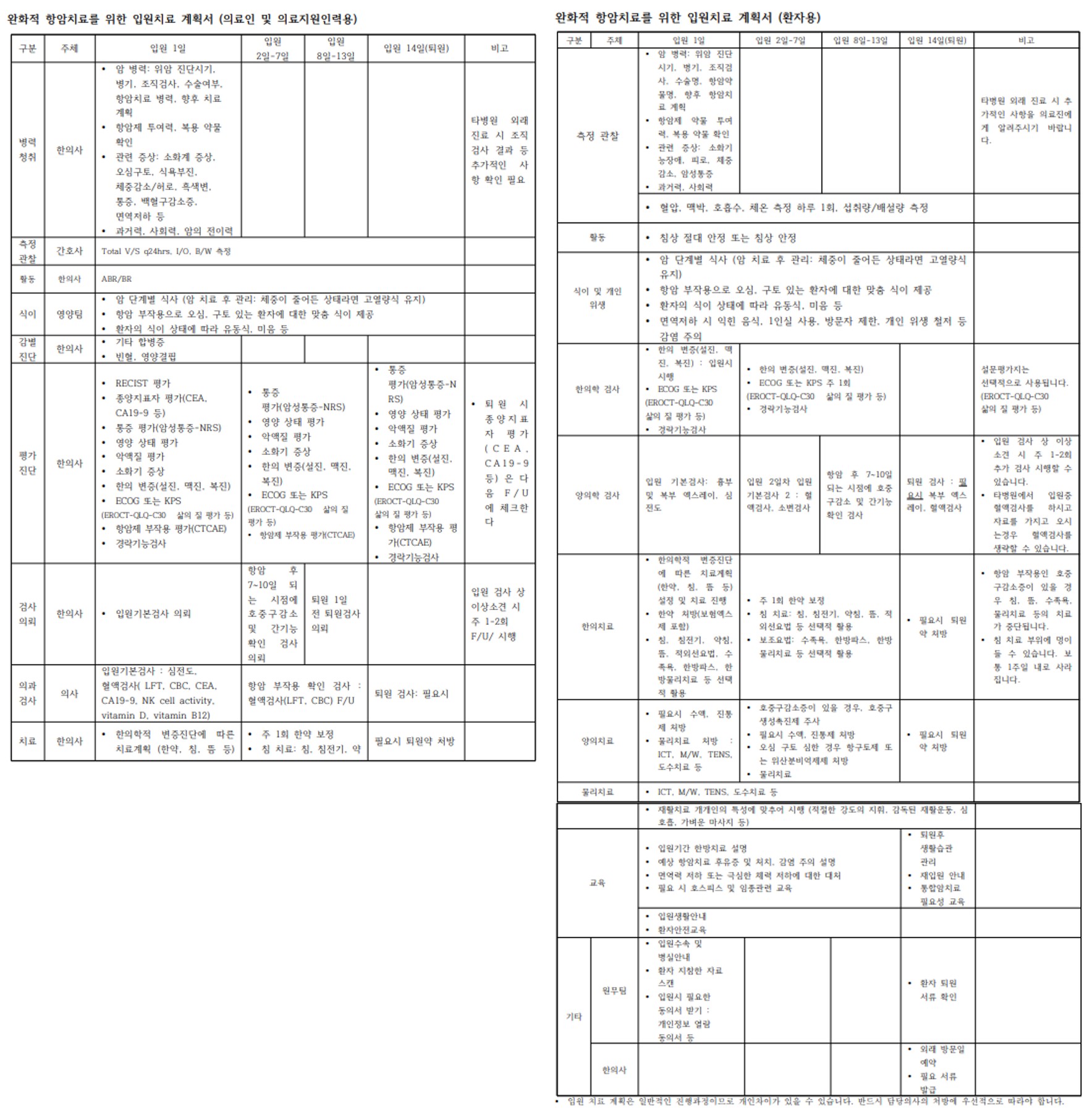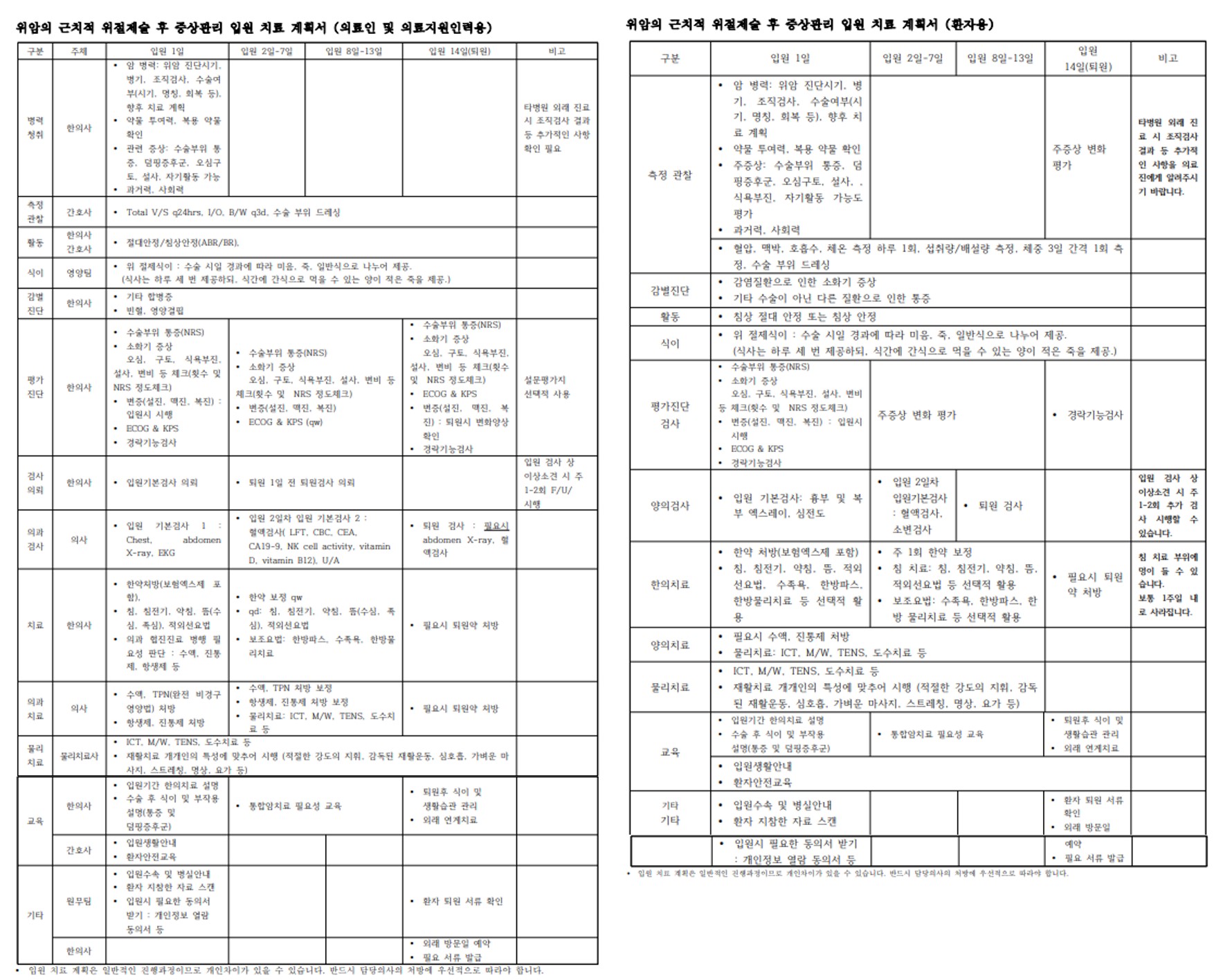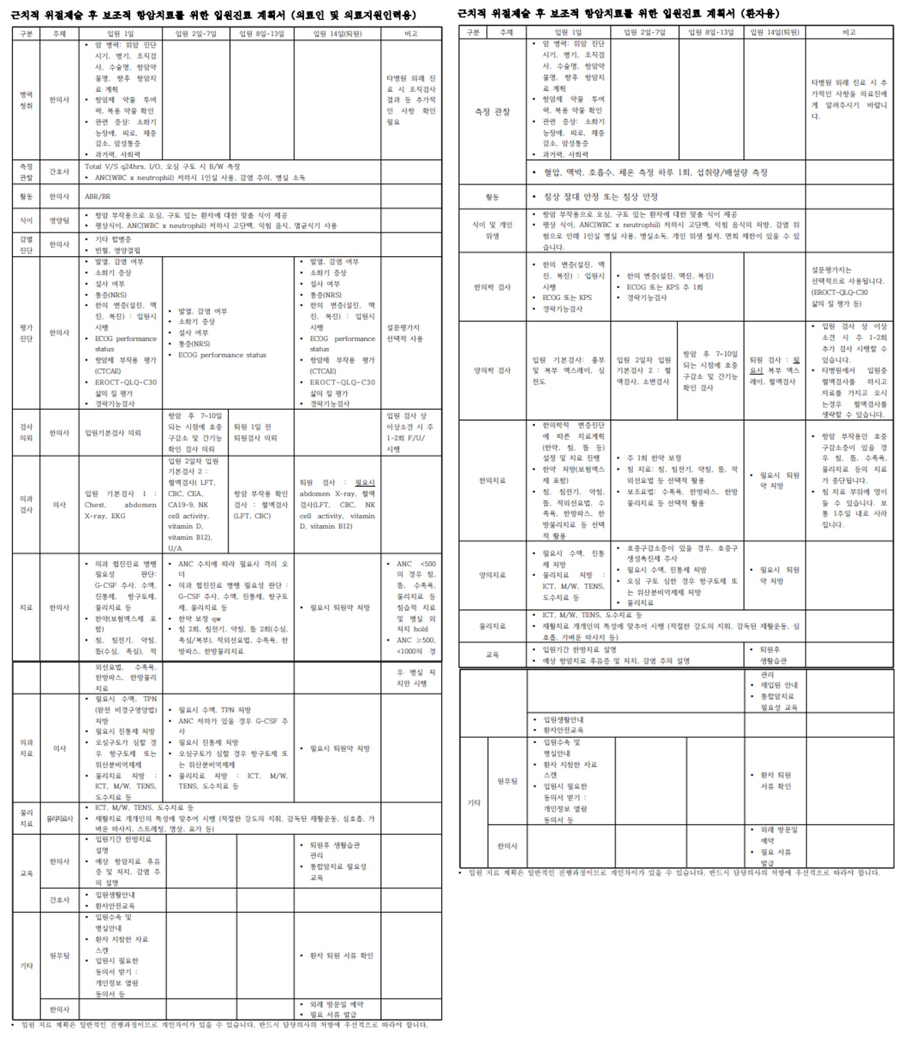 위암 협진병원용 한의표준임상경로