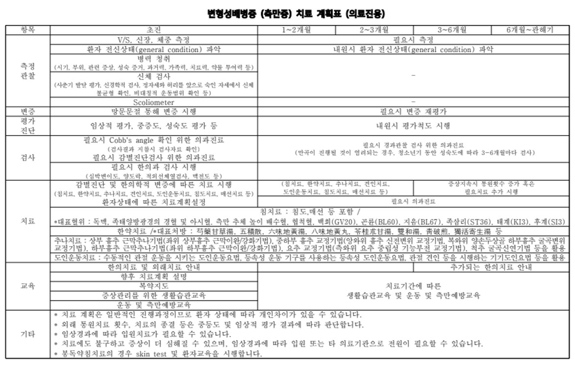변형성배병증 협진병원용 한의표준임상경로
