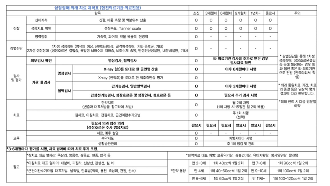 소아청소년성장장애 협진병원용 한의표준임상경로