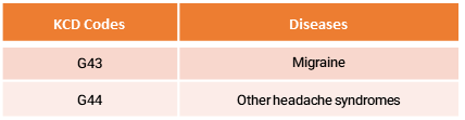 - Patients diagnosed with a primary condition related to headaches, based on the KCD codes listed below.