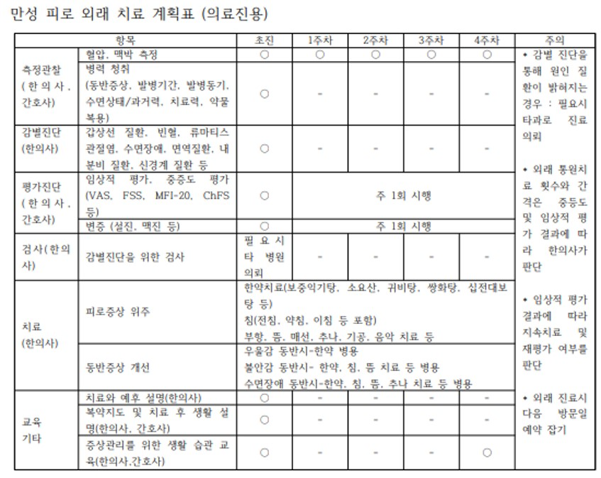 Chronic Fatigue Collaborative Treatment Time-Task Matrix