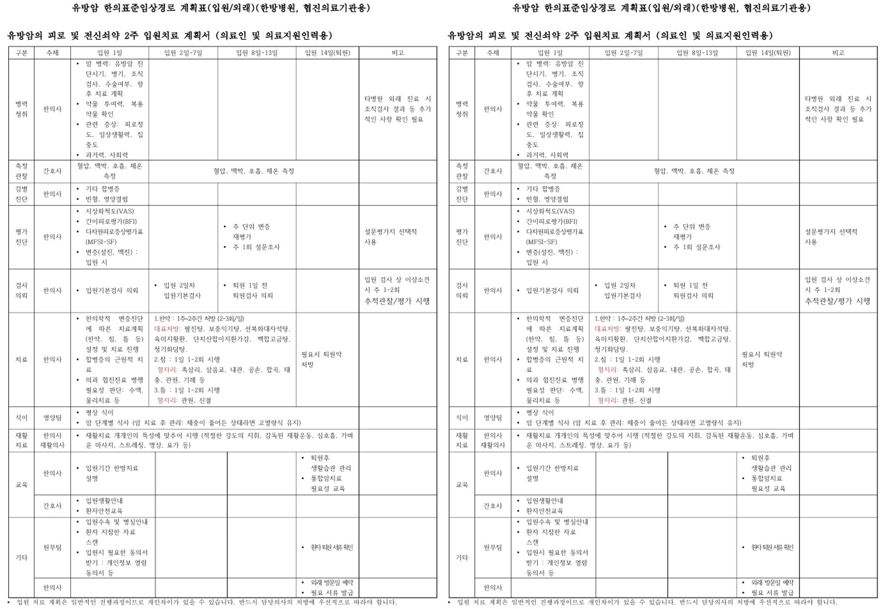 Breast Cancer Collaborative Treatment Time-Task Matrix